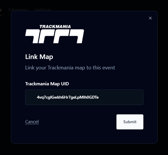 3. [IMPORTANT] Please Fill in the event Info with the Trackmania exchange URL and Map ID: (the six digit code to find your map from the plug in)