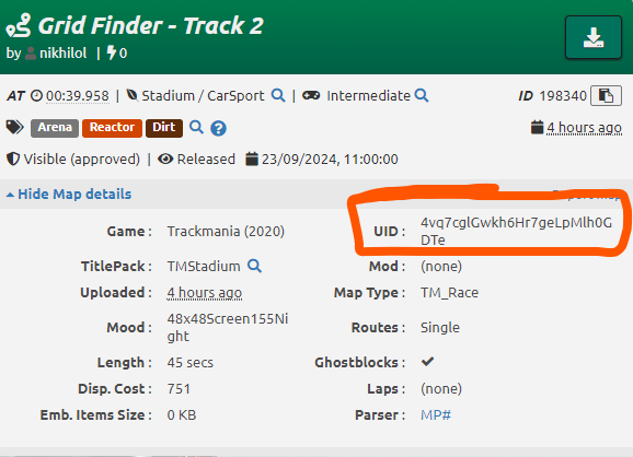 3. Once you have joined the event. Look in the description for the Map ID or the Trackmania Exchange Map info. You should also be able to see the leader board there with the live results.