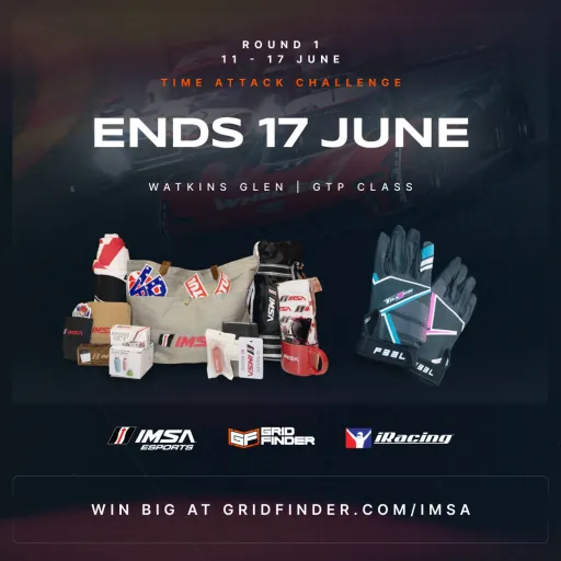 Take home some amazing prizes from the guys at IMSA, Grid Finder and Rafa Racing including iRacing credits, racing gloves, exclusive IMSA prize packs, and even VIP race day experiences!