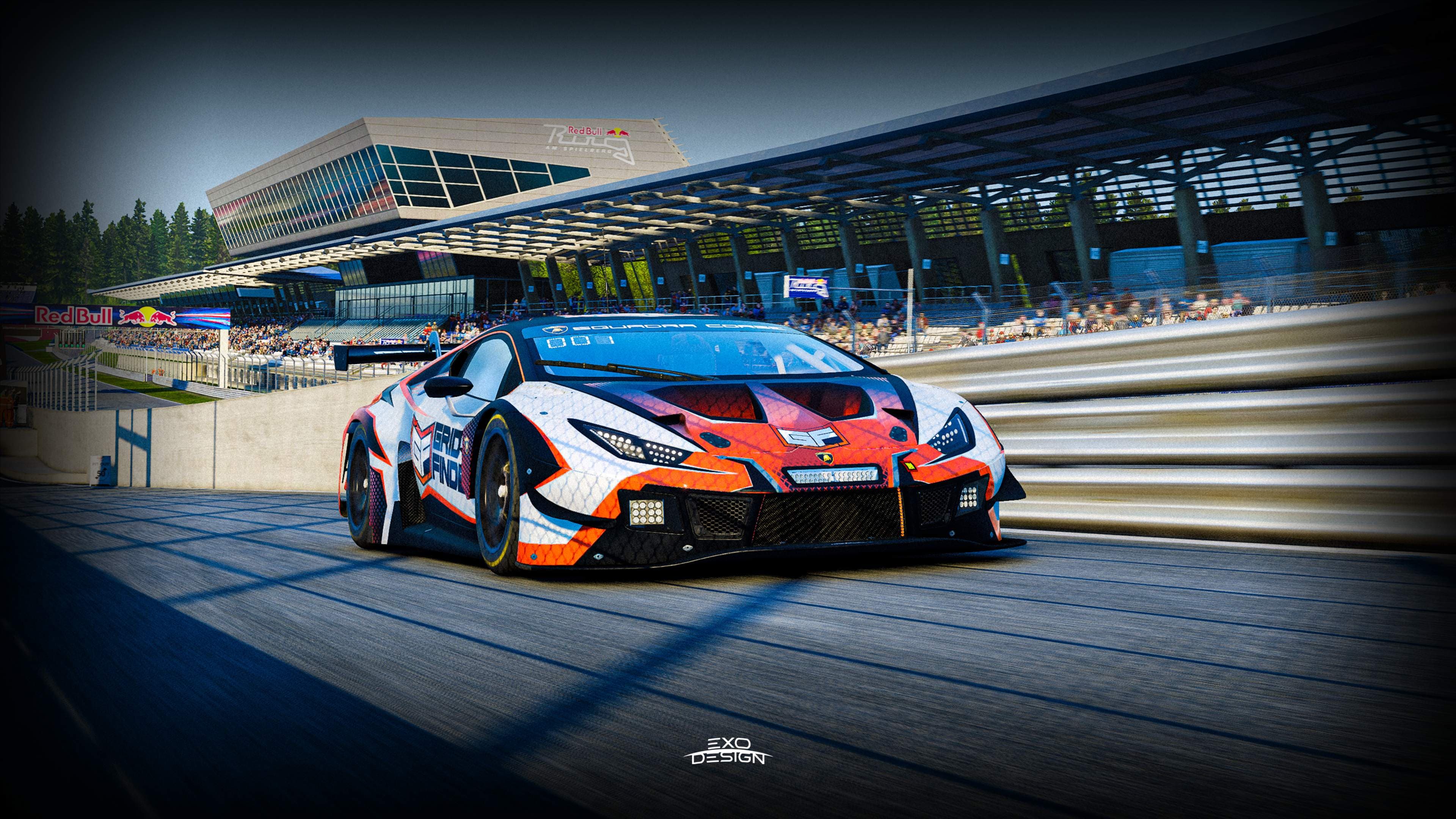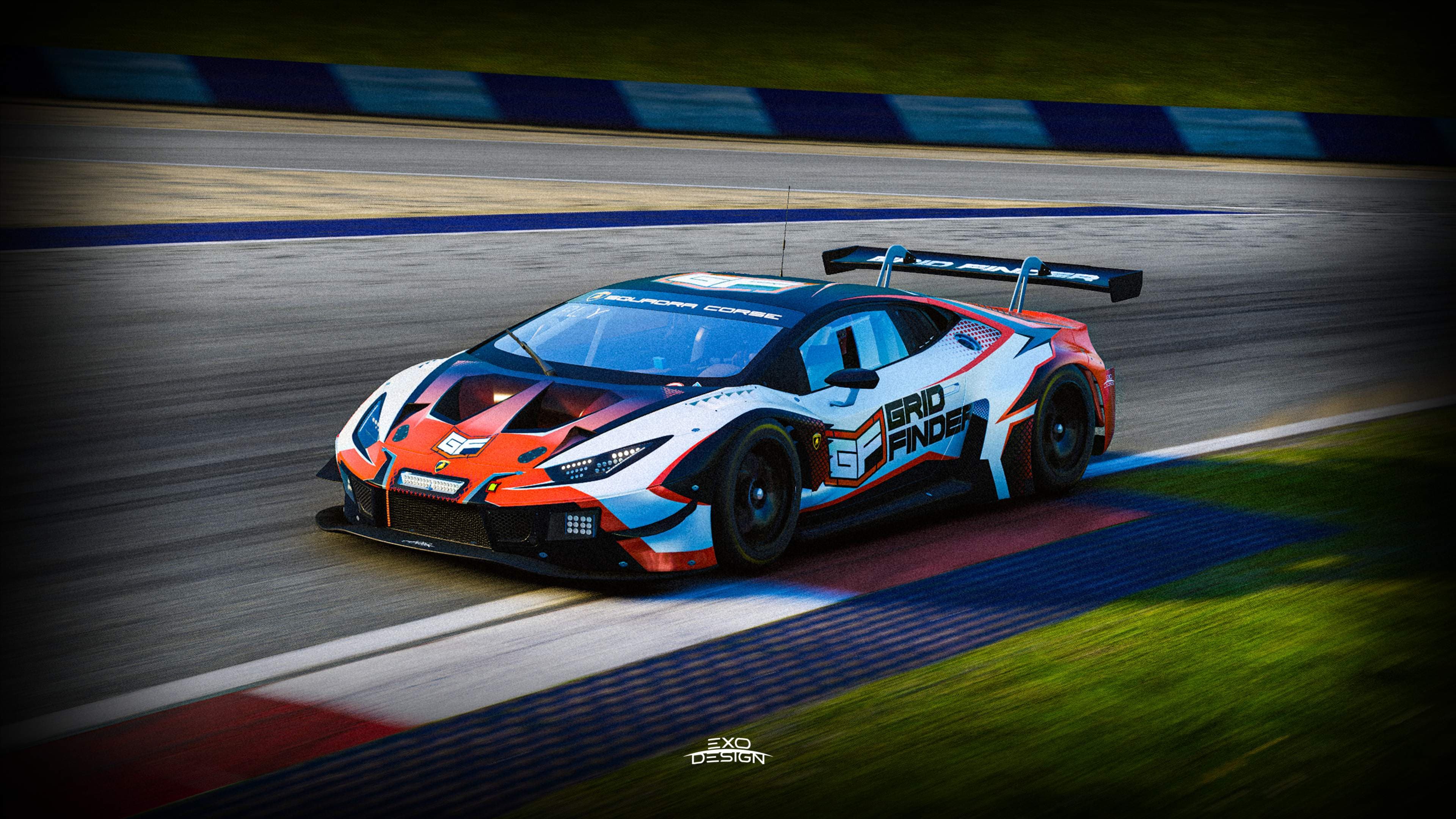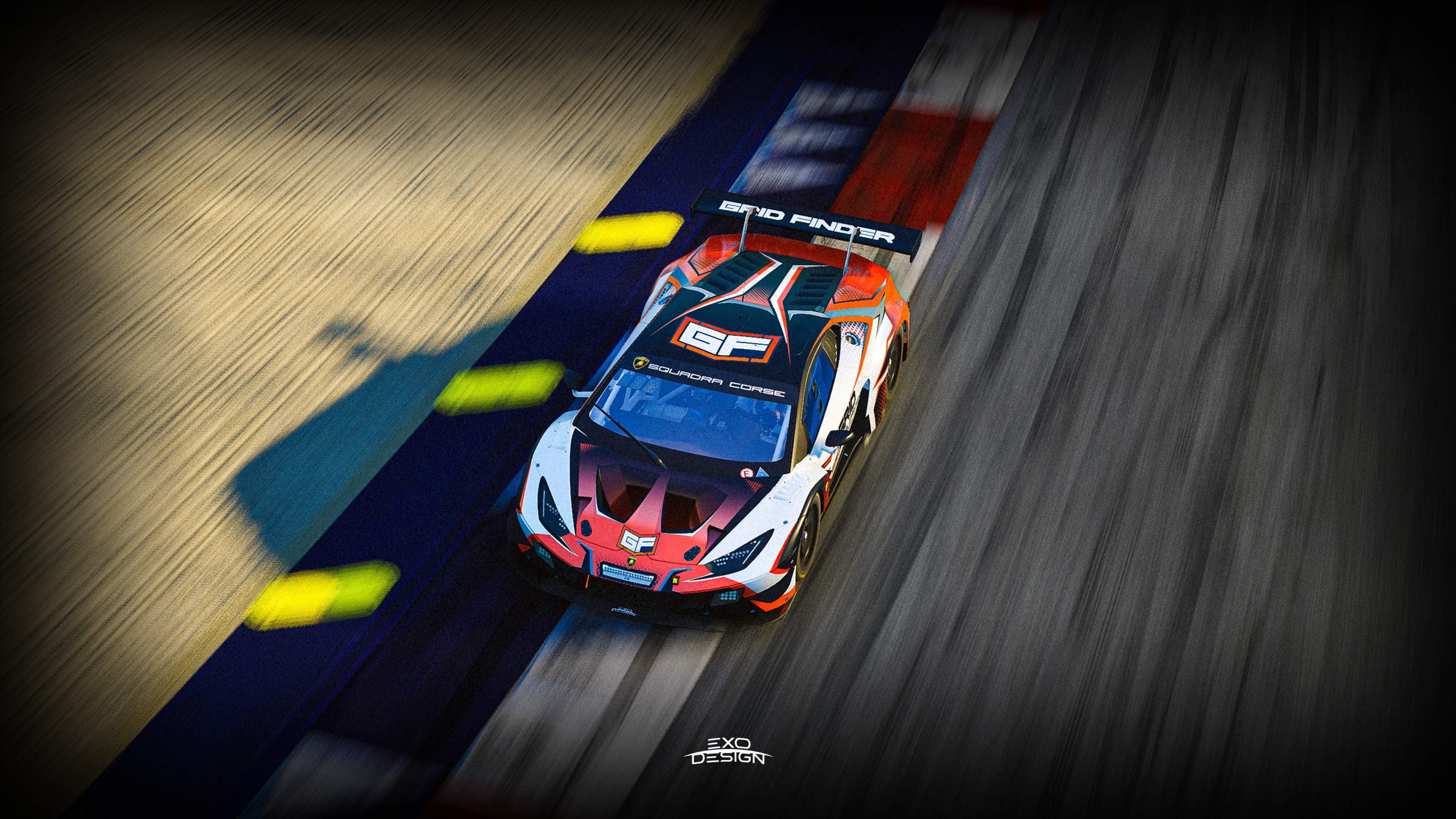 We’re excited to reveal the new GridFinder livery for the Lamborghini Huracan Evo GT3! 🏎️✨ This striking design features an aggressive, sporty pattern with sharp, cutting lines in dark navy blue, white, and orange. Every detail is crafted to perfection, making this livery a true racing masterpiece. 🔥