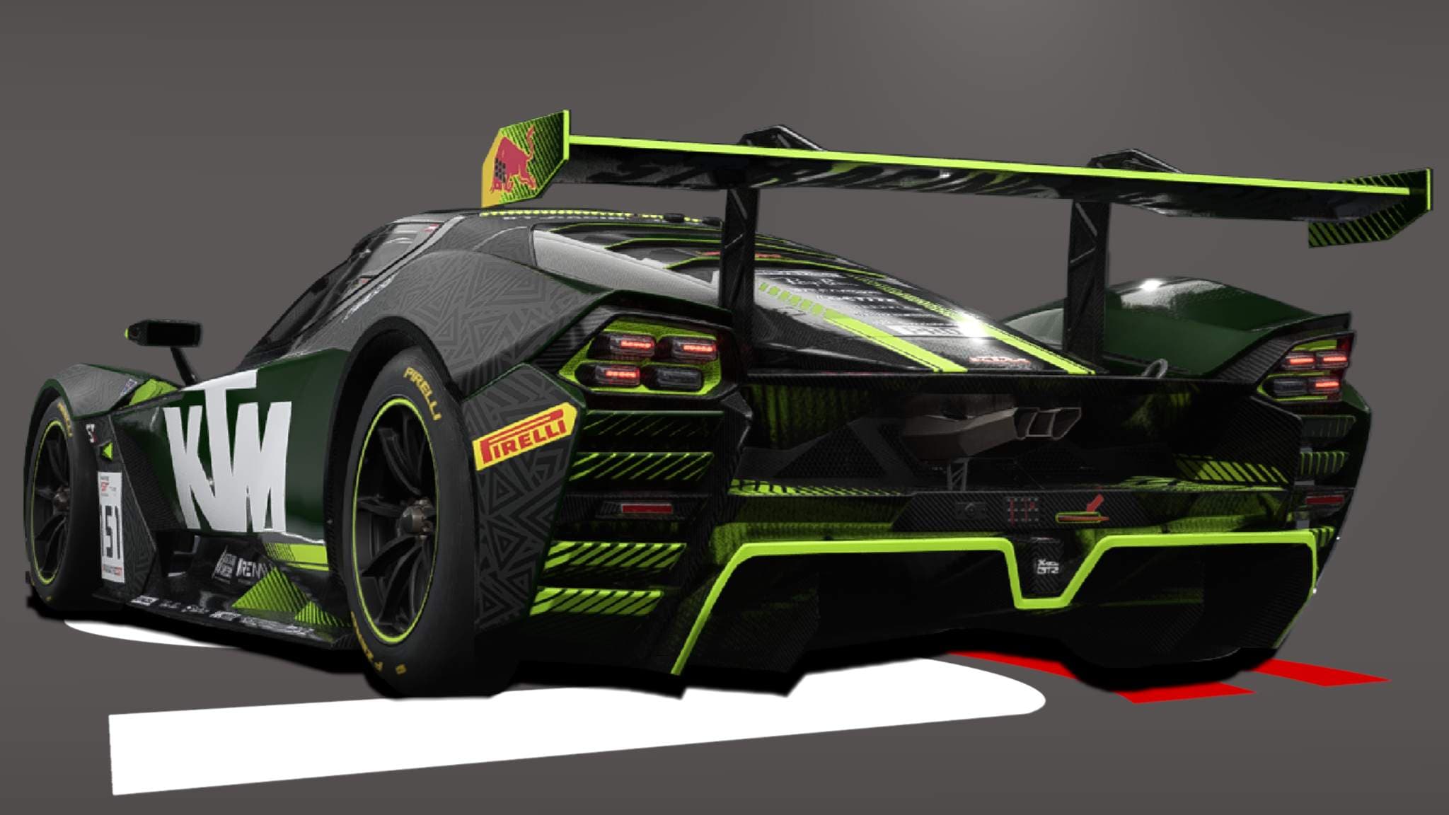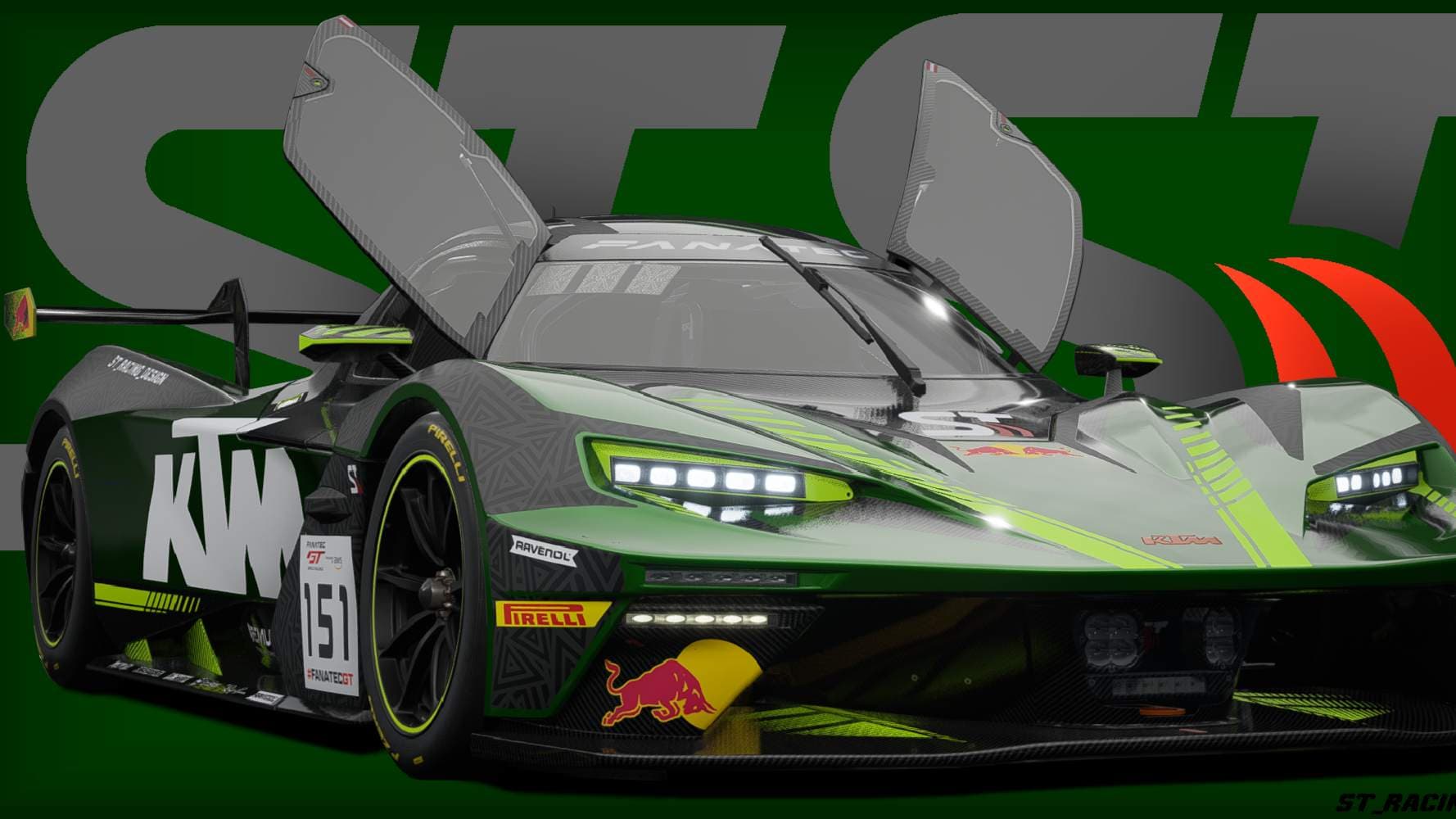 Introducing the fierce and captivating KTM X-Bow GT2 livery, where dark elegance meets high-performance edge. This incredible design is dominated by deep shades of metallic green, infused with bold, vibrant neon green highlights that radiate energy and speed. The sharp lines and flowing patterns give the car an aggressive, aerodynamic look, making it feel fast even at a standstill.